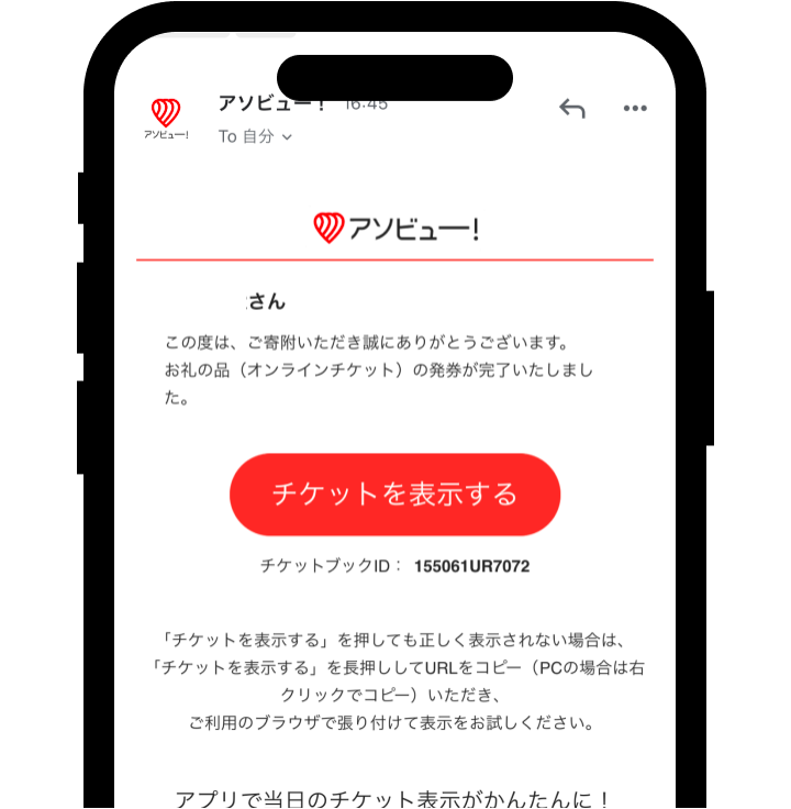 寄附完了メール内「チケットを表示する」から確認する